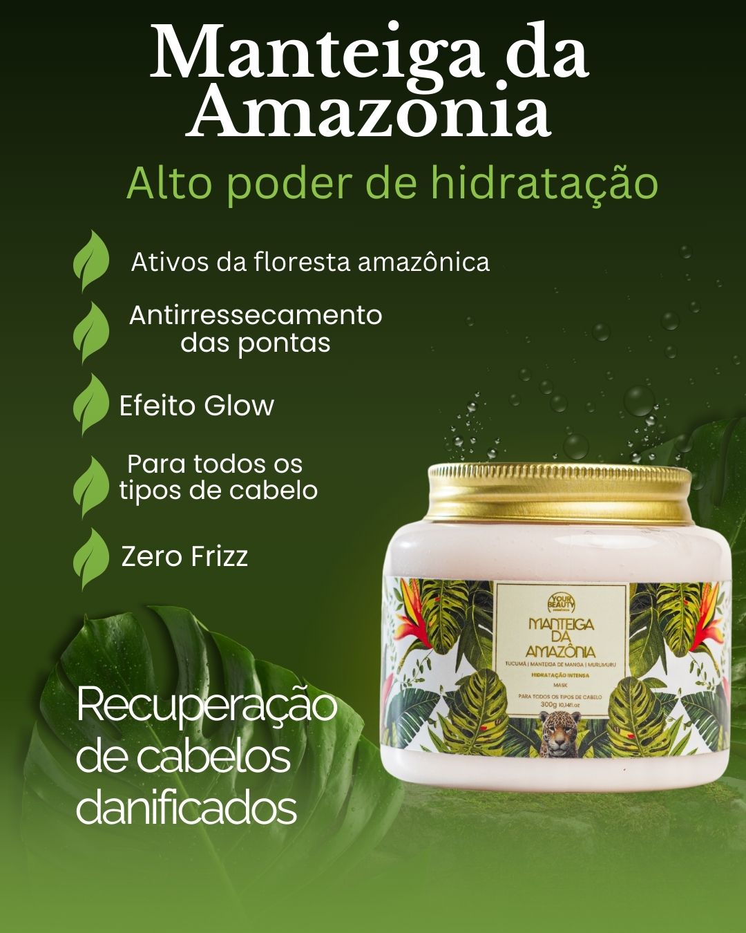 Diretamente da floresta para sua rotina de beleza! A Manteiga da Amazônia combina os mais poderosos ativos naturais, Tucumã, Manteiga de Manga e Murumuru – para oferecer uma hidratação intensa, nutrição profunda e reparação imediata os cabelos.
